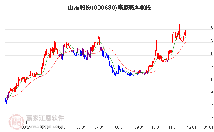 在工程机械行业所属成分股中,有5个工具共振发出多头信号的为:山推股份、法兰泰克、林州重机,我们单独看一下山推股份在赢家江恩工具表现: