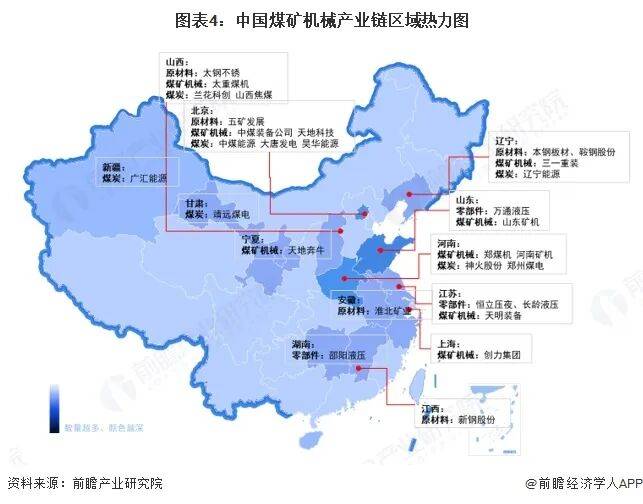 从产业链区域分布来看,目前辽宁省、山西省、北京市的煤矿机械产业链布局较全,涉及上游原材料环节,中游煤矿机械制造环节,及下游煤炭环节: