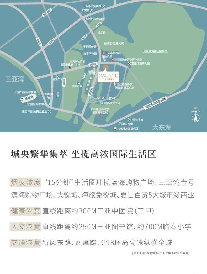三亚湾海岸也很近,开车约2.5公里左右,可享三亚湾商业、休闲、医疗成熟配套。
